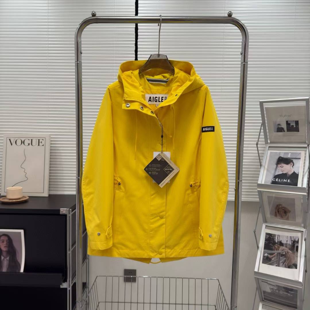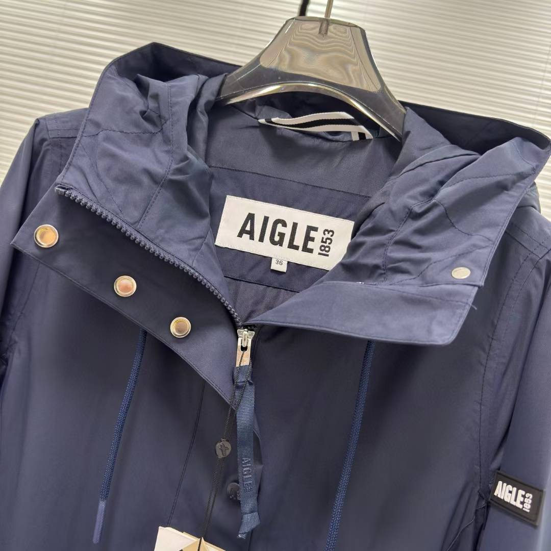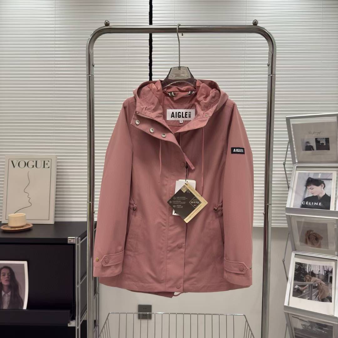 艾高Aigle新款女士连帽收腰风衣冲锋衣夹克外套