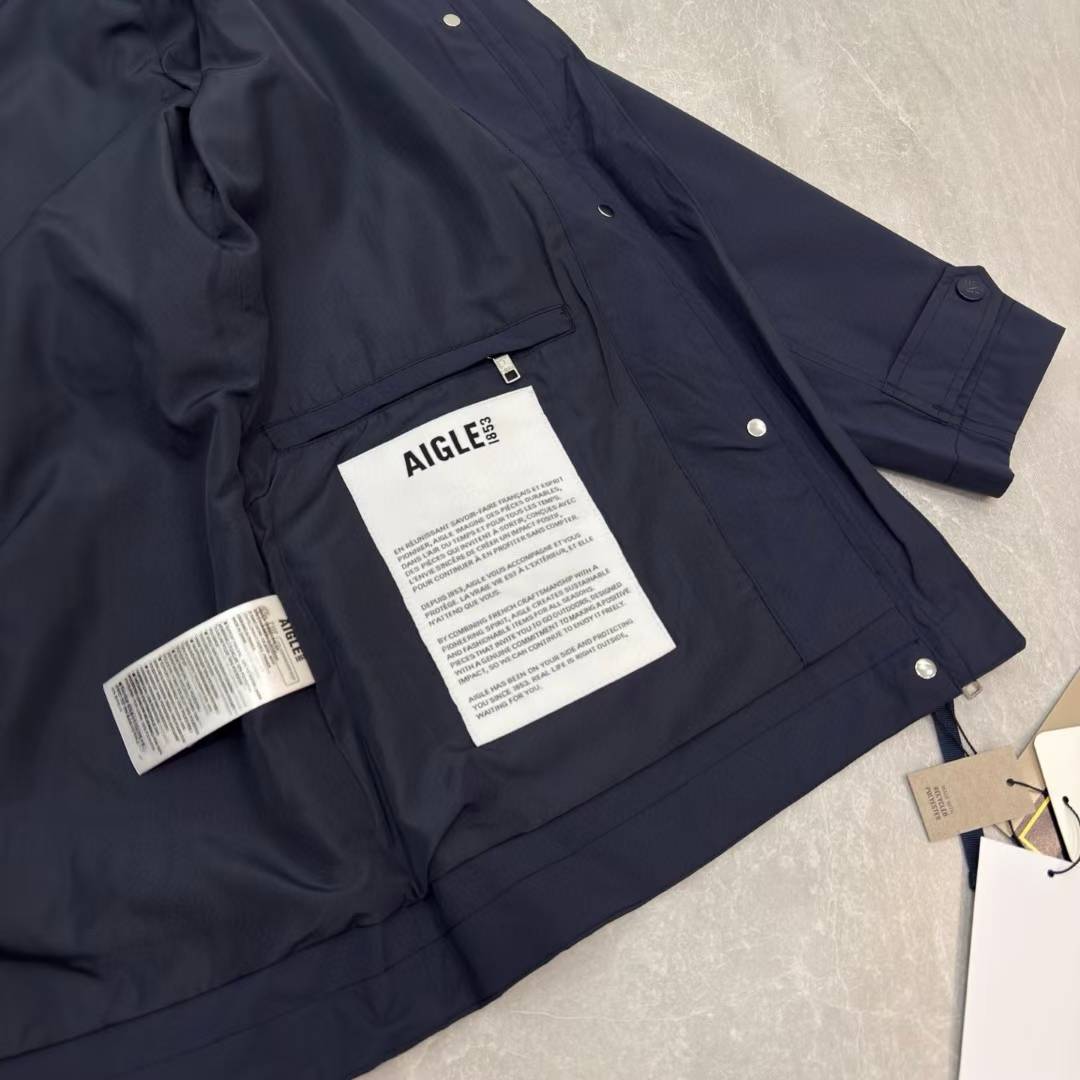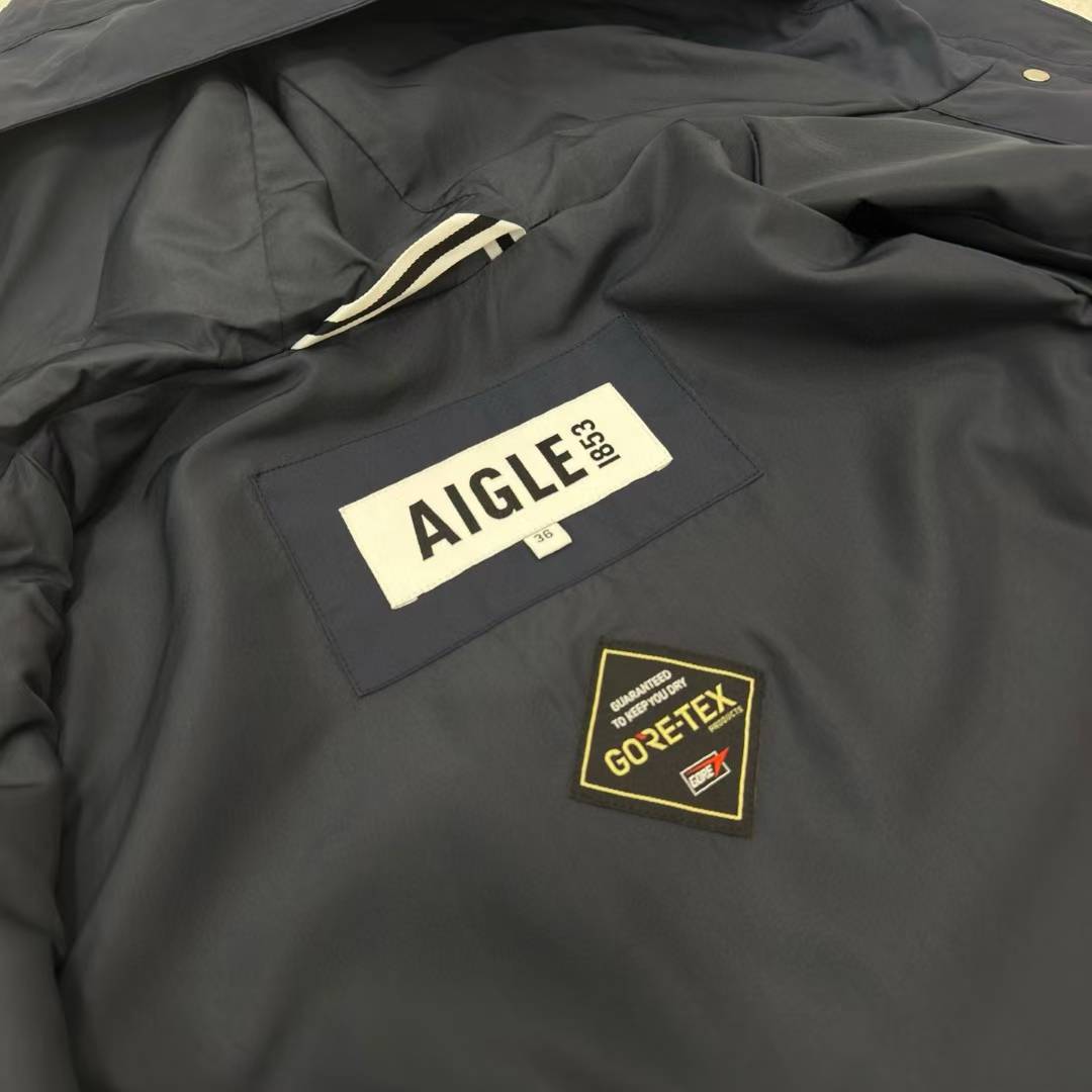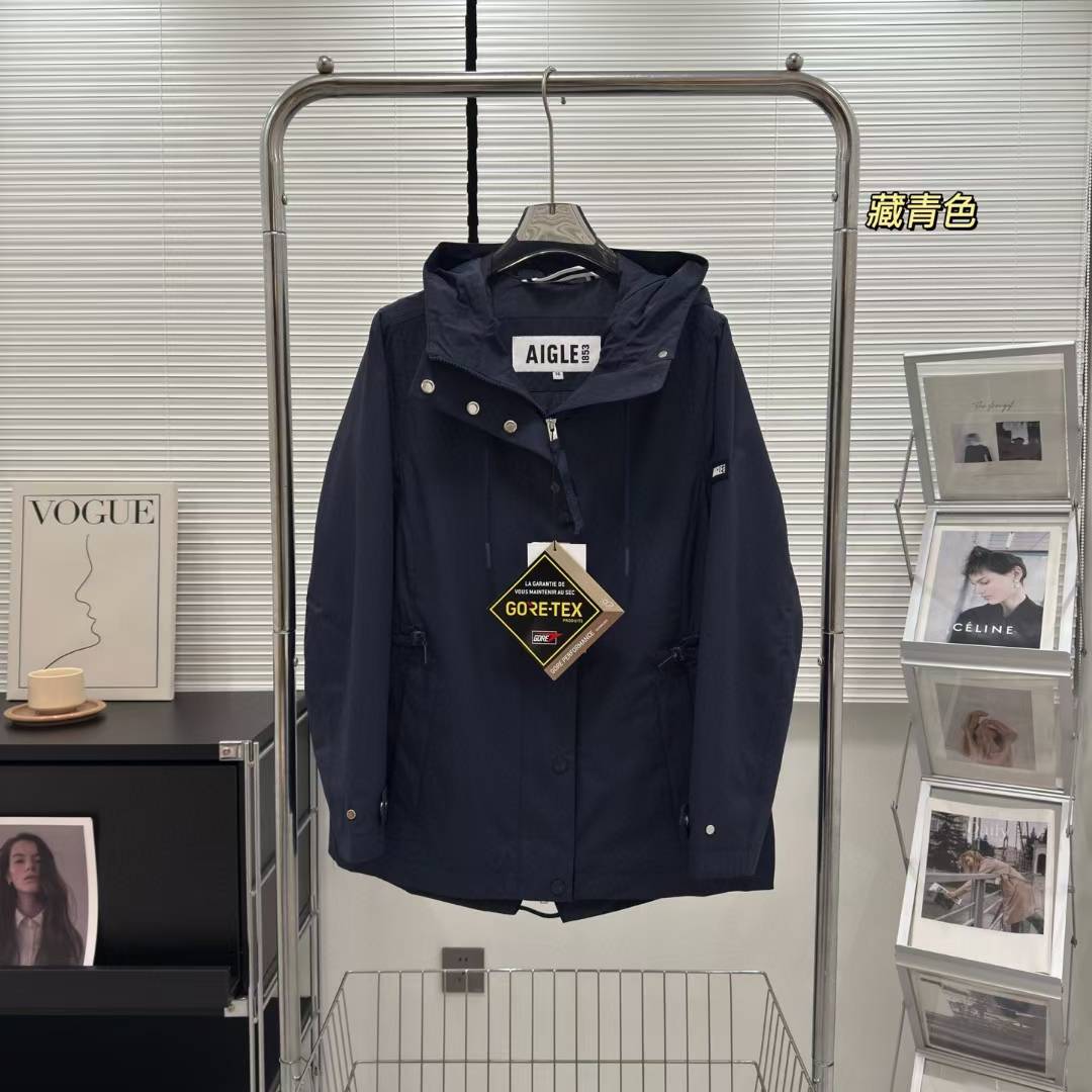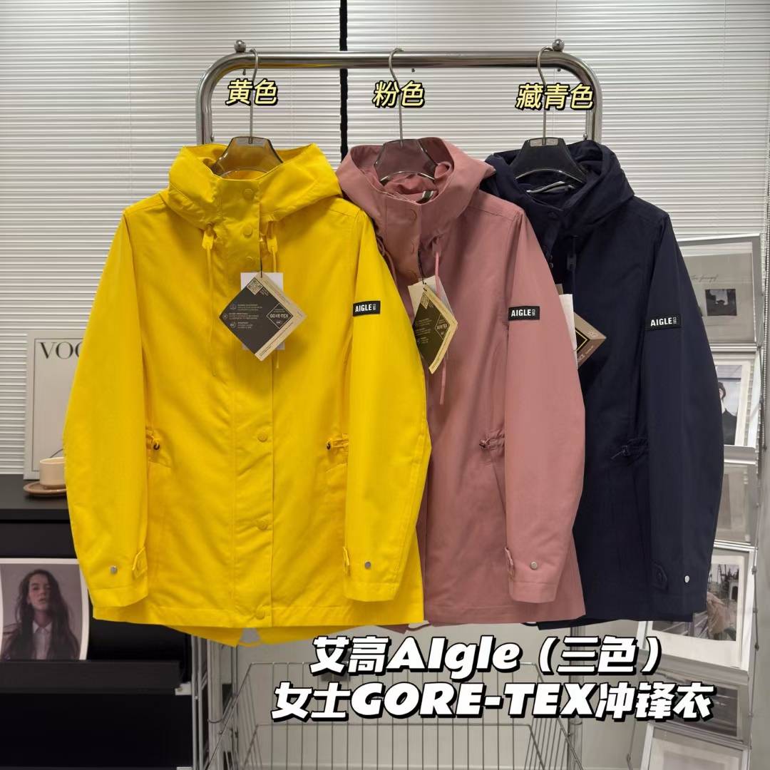 艾高Aigle新款女士连帽收腰风衣冲锋衣夹克外套